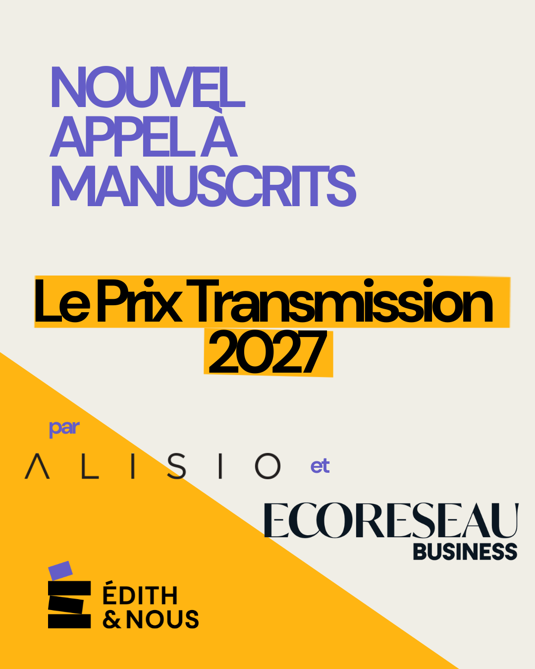 - Le manuscrit doit être déposé via le site d'Édith & Nous, avec le lien suivant : https://app.edithetnous.com/alisio-prixtransmission2027